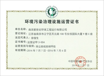 镇江江南环保工程运行有限公司成立:从事后续装置运行及副产品硫酸铵的销售,同年12月获得环境设施甲级运营资质,现更名为南京新世纪环保工程运行有限公司。