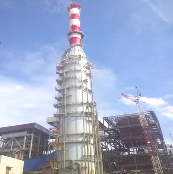 新疆梅花氨基酸2×500MW项目,单塔处理烟气量219万方,为全球规模领先的单塔氨法处理装置。